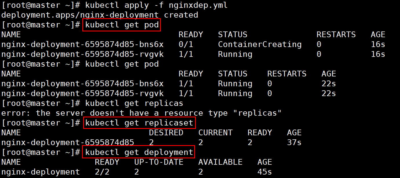 # kubectl get pod # kubectl get replicaset # kubectl get deployment
