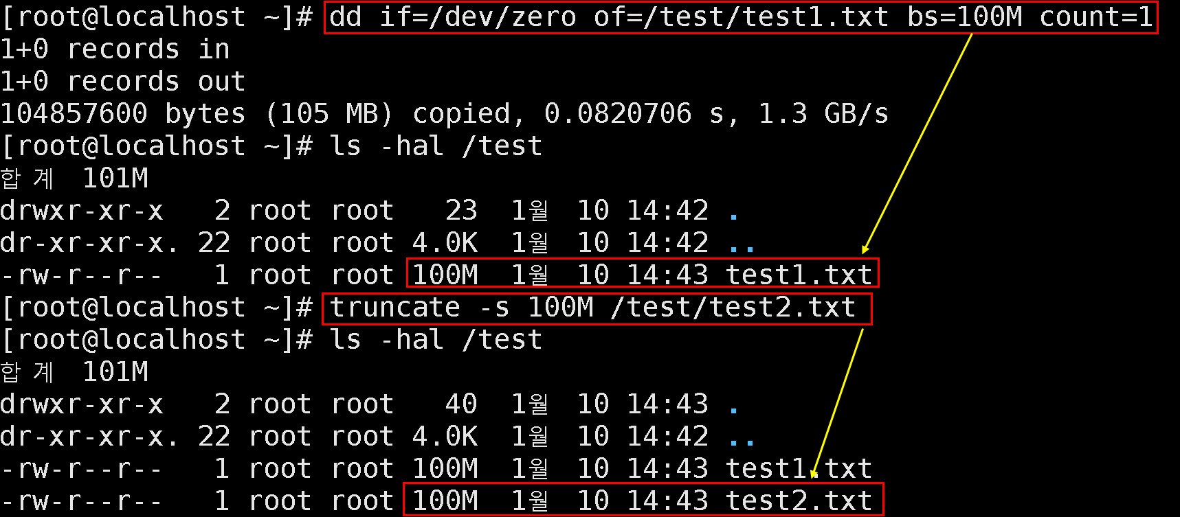 4.1.1. dd if=/dev/zero of=/test/test.txt bs=100M count=1