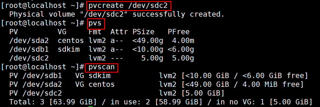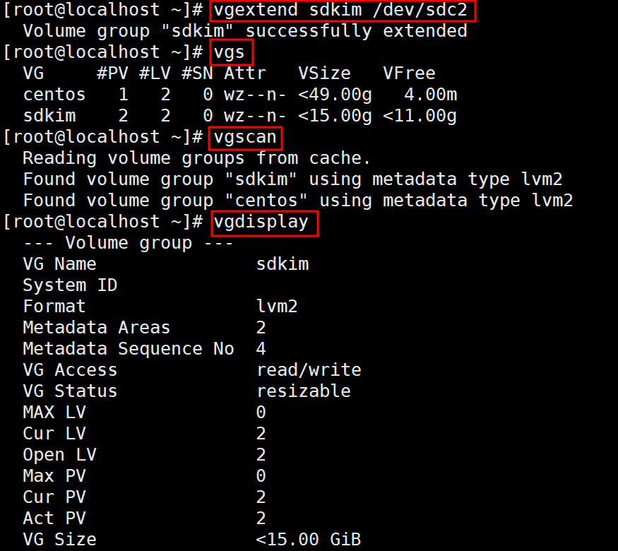 partitions 2.5. sdc의 두번째 파티션을 vg에 추가합니다.