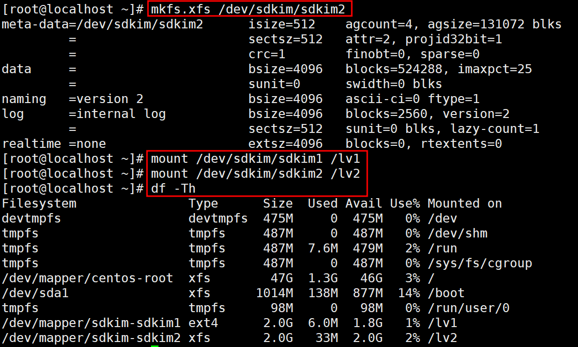 lv 생성 2.3. dh -Th 명령어로 확인합니다.
