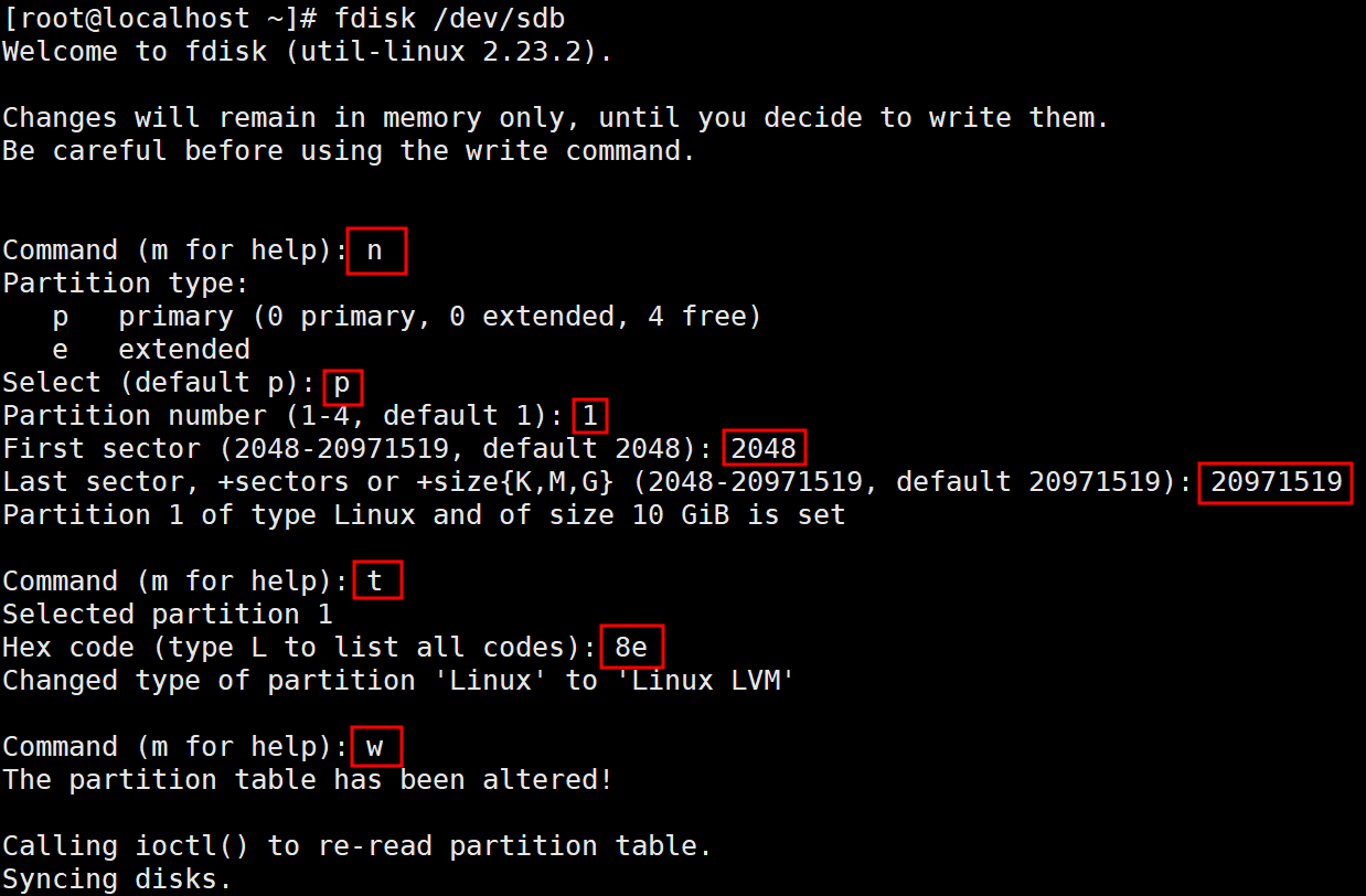 디스크 추가 2.0. sdb 10G를 하나의 파티션으로 파티셔닝 합니다.