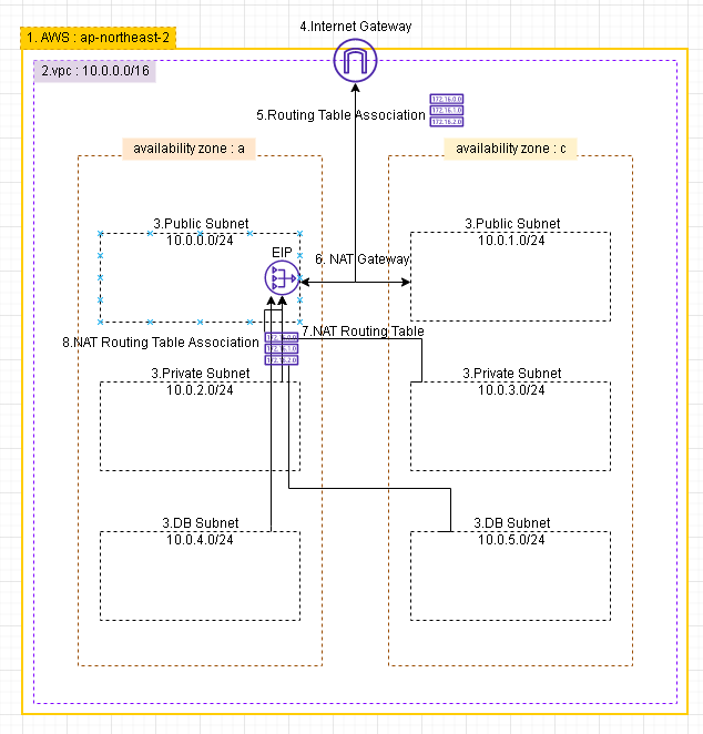 오늘은 이전에 생성한 NAT Gateway와 Subnet을 Association 하는 부분입니다.