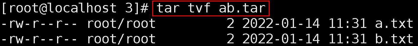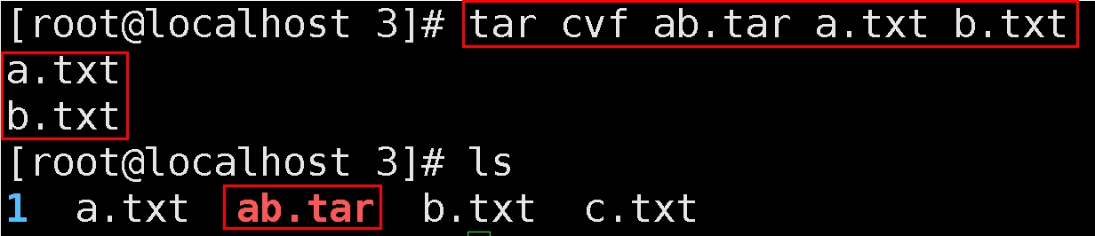 2.3. a.txt와 b.txt 파일을 ab.tar라는 단일 파일로 만들기
