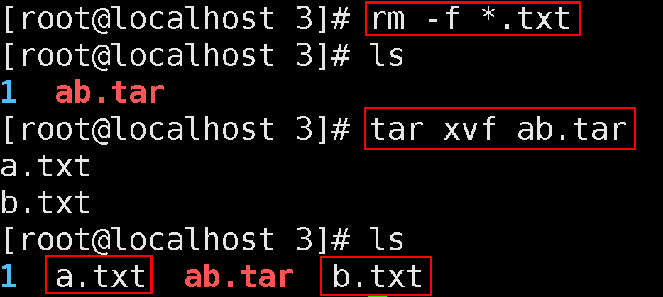 2.4. 모든 txt파일 제거 후 동일 디렉토리에 ab.tar 아카이브 해제