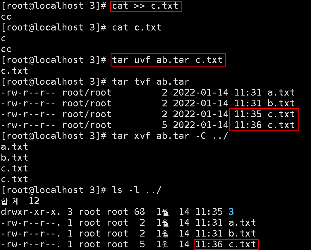 1.1.1.4. -r : 기존 아카이브 파일에 신규 파일 추가