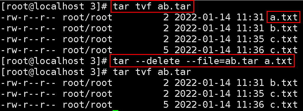 2.8. ab.tar 파일의 a.txt 파일만 삭제하기