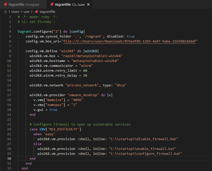 5.3. 6번째 줄의 config.vm.box_url을 다운로드한 desktop의 이미지 이름으로 지정합니다.