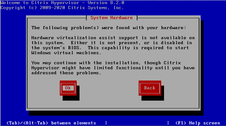 EULA 13. CPU Hardware 가상화 체크 하지 않았을 경우 HVM 지원하지 않는다는 메세지 (전 다른 이유가 있으니)