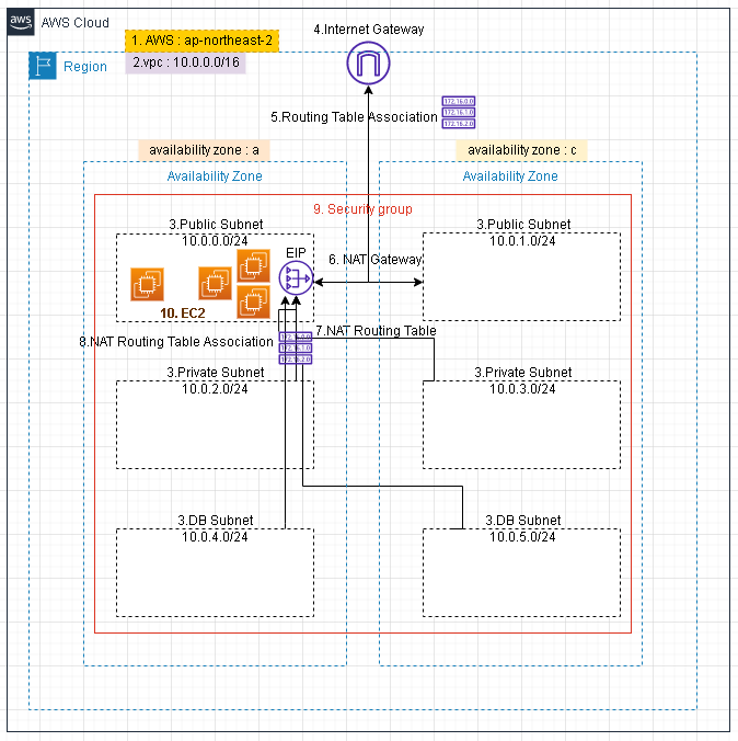 2.5. 모두 public a Subnet에 할당했는데 다른 Subnet에 배포하셔도 무방합니다.