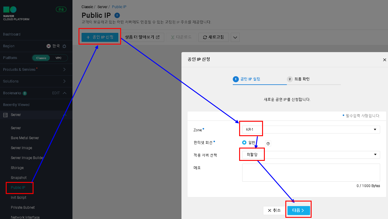 Server 생성 중 공인 IP 요청 10. Public IP - 2