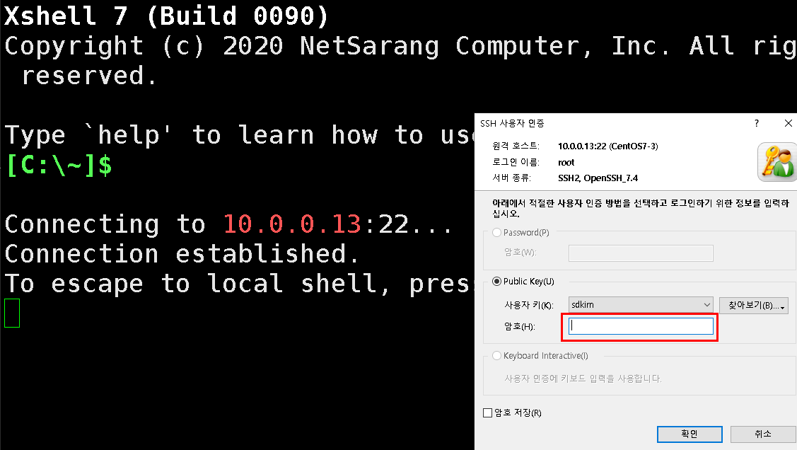 접소 후 해당 기능을 확장하면 Ansible등에서 패스워드 없이 로그인 가능합니다.