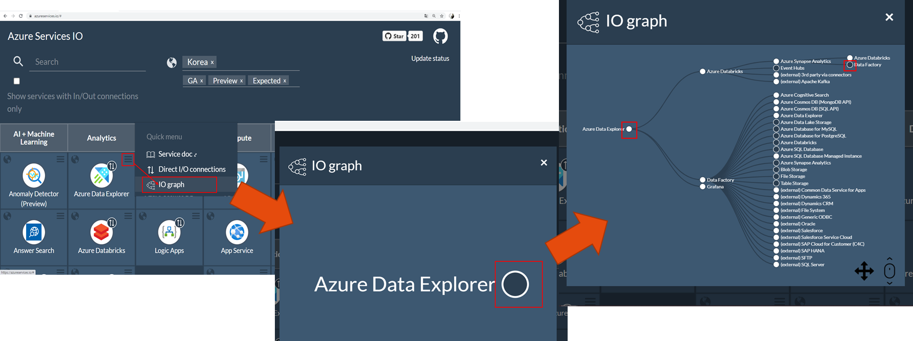 3.4.1. Service와 입출력 관계에 있는 Azure Service를 Graph로 표시