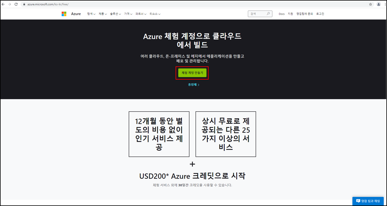 1.2. 화면 중앙의 "Azure 체험해 보기" 클릭