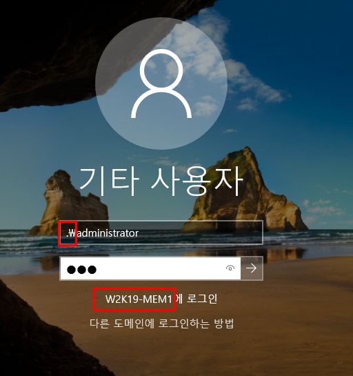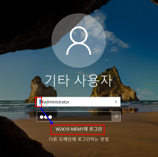3.1.1. 도메인에 가입한 Member Server를 재시작 하게 되면 기본적으로 Local Logon 입니다.
