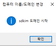 1.3.1. 컴퓨터 이름/도메인 변경에서 소속그룹 -> 도메인 -> 도메인 이름 입력 (이 부분에 IP 입력불가, DNS 필요이유)