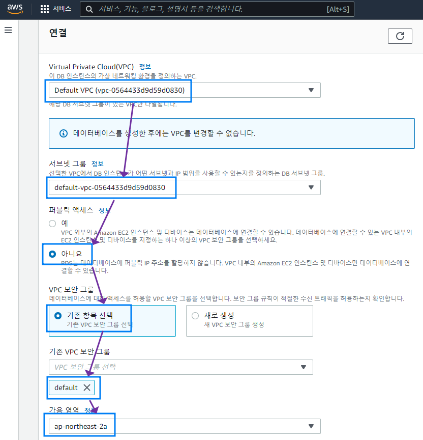 DB 생성 - 3 1.3.14. VPC : Terraform 으로 생성한 VPC 선택(그림과 같지 않으니 유의)