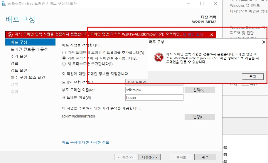 이전 포스팅에서 동일한 도메인에 도메인 컨트롤러 추가!