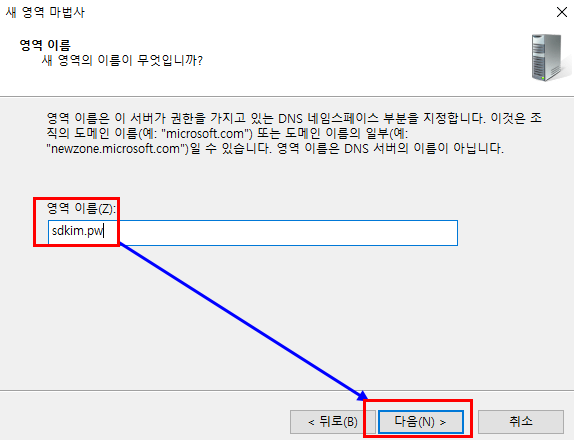 부모 도메인 : 보조 영역에 자식도메인 이름 입력