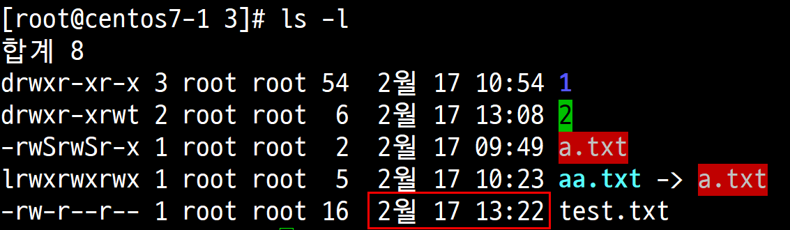 주의할 점은 Linux에서 파일 및 디렉토리의 속성 정보에 있는 시간은 마지막으로 수정한 시간입니다.