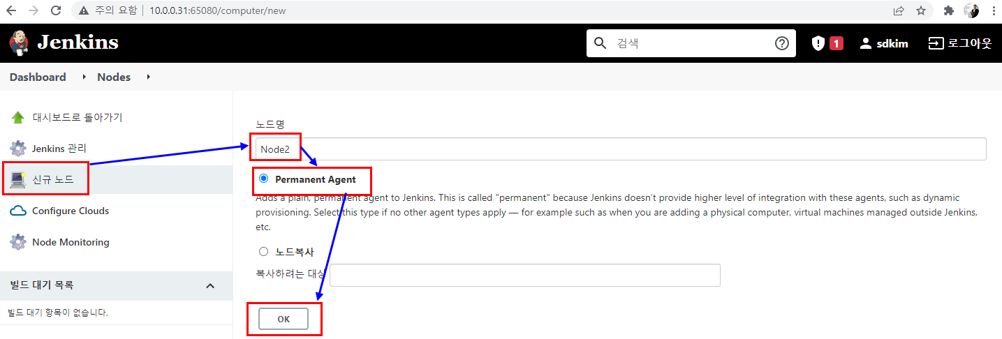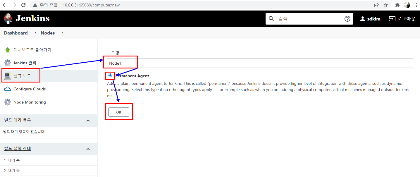 1.1.2. Jenkins 관리 -> 노드 관리 클릭