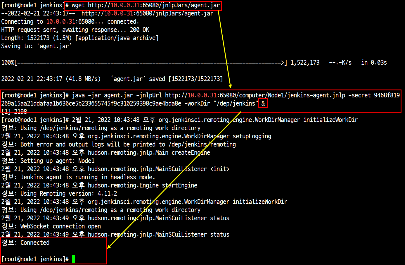 2.2.1.1. # wget http://마스터서버IP:jenkins포트/jnlpJars/agent.jar