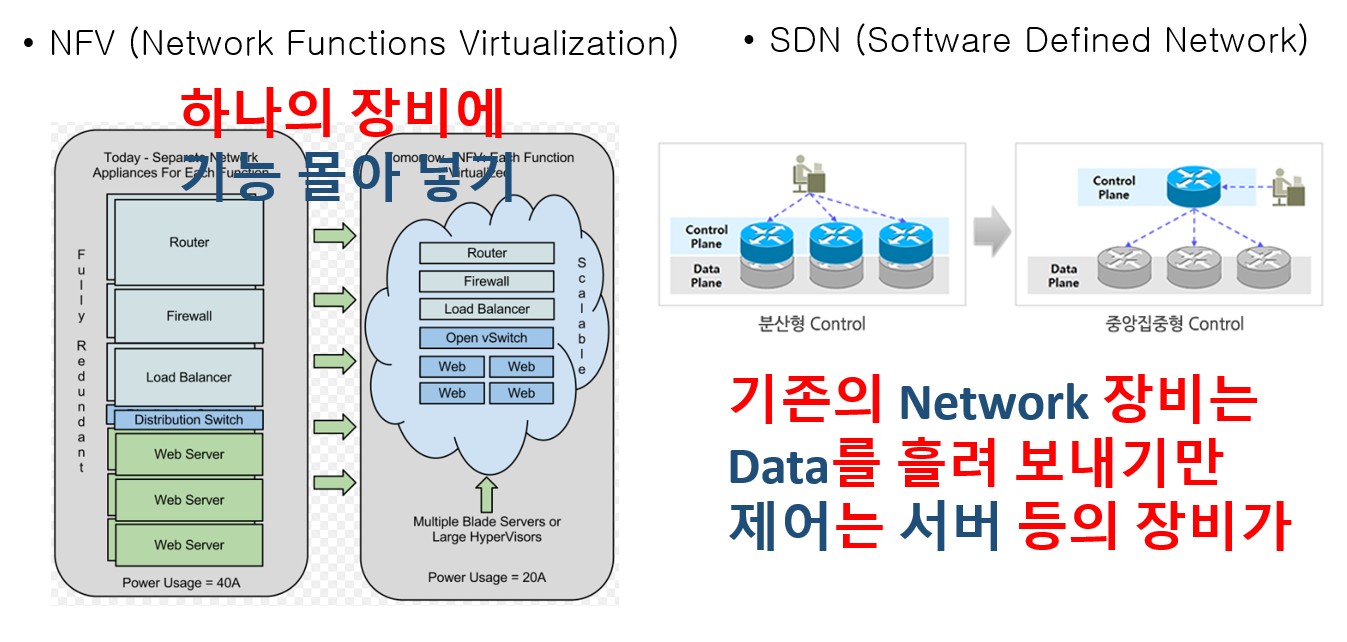 더불어 음 더불어가 아니라 가상화 이후 Cloud분야에서 많이 활용되고 있는 NFV와 SDN을 살펴보겠습니다.