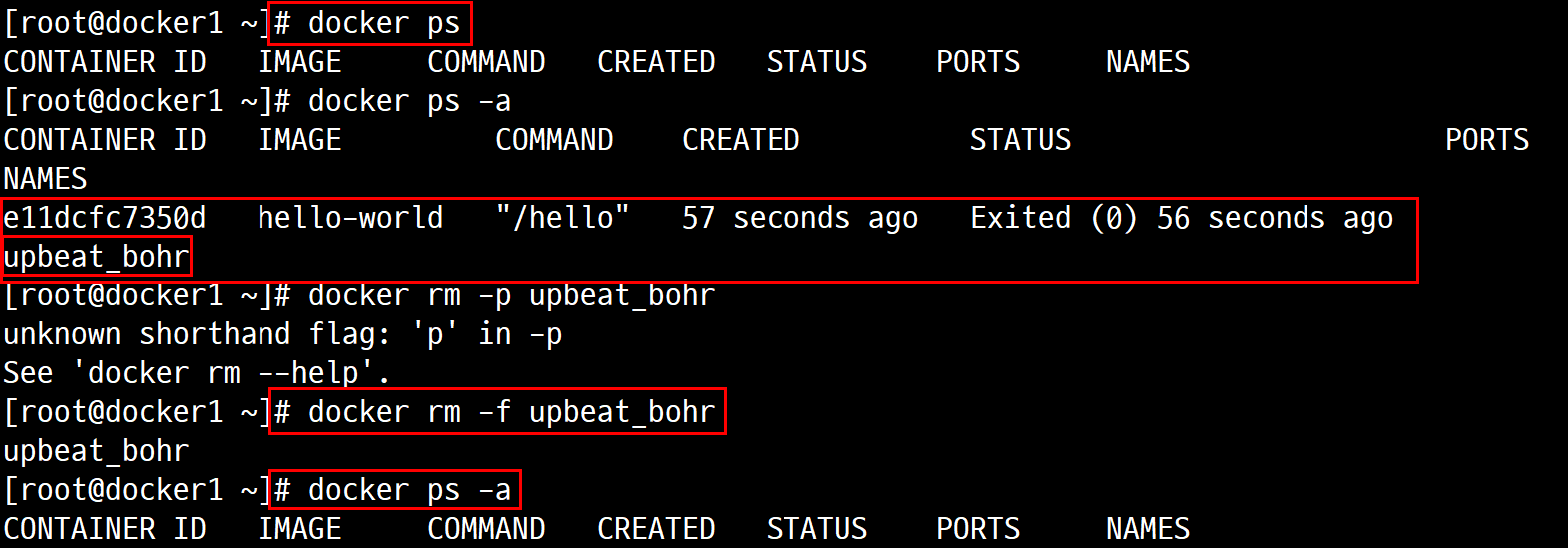 6.6.3. # docker rm -f upbeat_bohr container names or container id로 삭제 가능