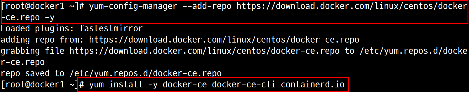 6.2.1. # yum-config-manager --add-repo https://download.docker.com/linux/centos/docker-ce.repo -y