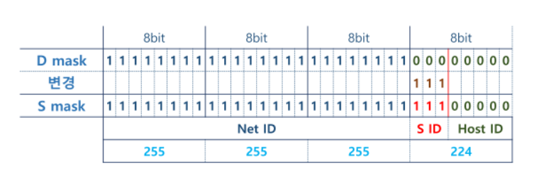 34.2. 기존의 Subnet Mask는 255.255.255.0 에서 255.255.255.224 로 변경됨.