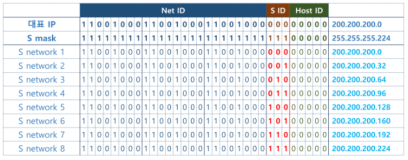 -> 주어진 Subnet Mask 즉 Default Mask의 1이 Network부분(파란색), 0이 Host부분(빨간색)임