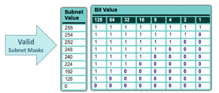 IP Address : 10000000 . 11000000 . 11111100 . 01100100 128.192.252.100