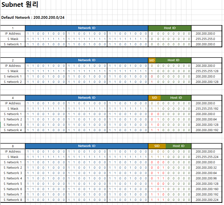 1.1. Default Network로 200.200.200.0/24 가 주어졌습니다/