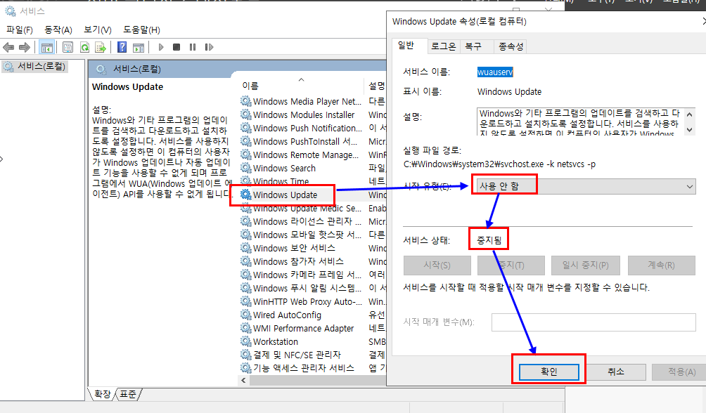 1. Windows Update 멈추기 : VM 속도 저하 방지