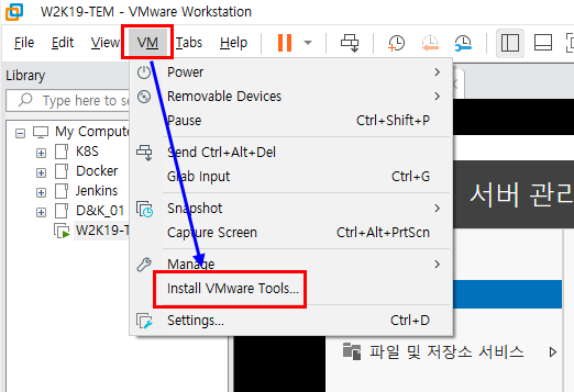 5. VMware Tools 설치 : VM용 각종 드라이버 설치(Mouse, Graphic등등)