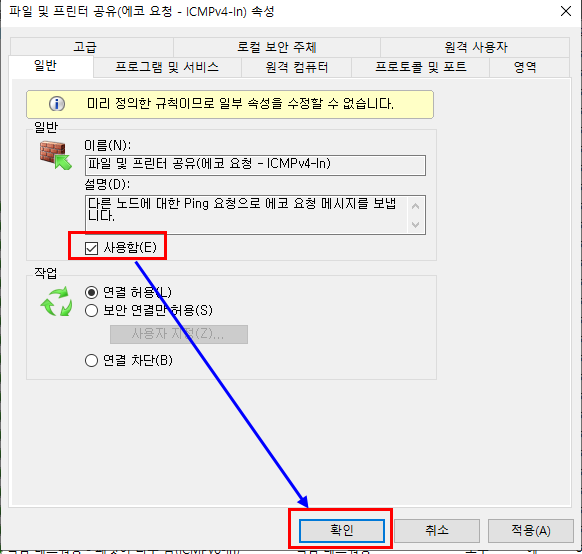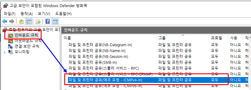2. ICMP Echo 요청 허용 : 통신 테스트