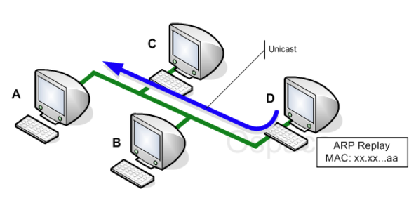 ARP Request 3.1.3. Host B는 자신의 MAC Address를 입력한 ARP Reply Packet을 송신자 A에게 Unicast로 응답