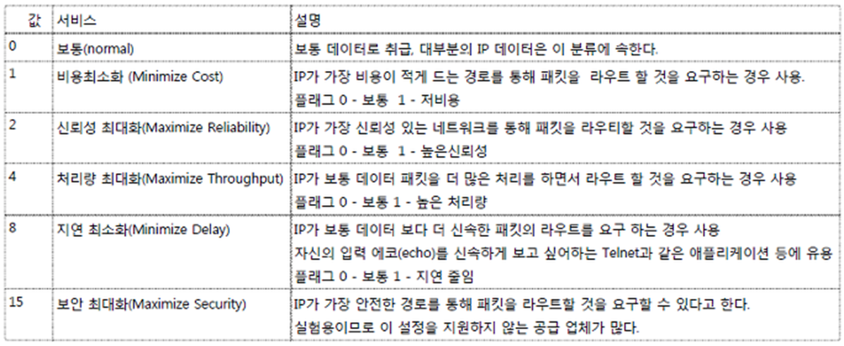 1.1.3. Type of Service Flags : 서비스의 우선 순위 제공