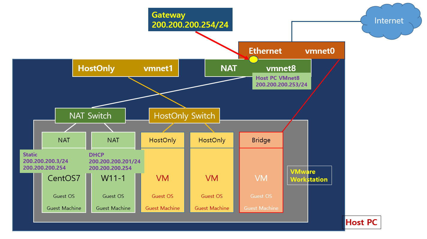 3.1. Host(실제) PC <-> VMware Workstation Pro <-> Virtual Machine