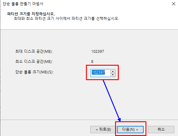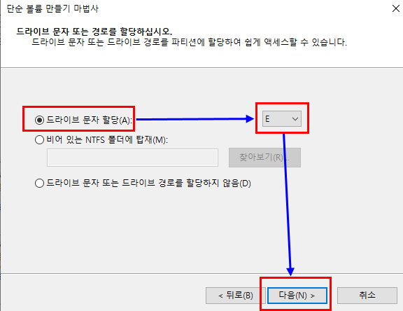 볼륨 만들기 마법사 2.3. 파티션 작업