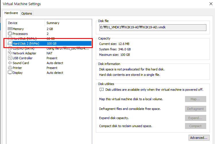 그 첫번째로 일단 Windows 2019 Server VM에 100GB 디스크 추가후 NFS 역할 설치 작업을 진행합니다.