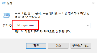DISK 추가 1.2. 실행창에서 디스크 관리 콘솔 열기