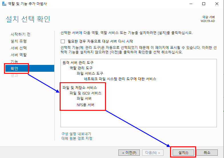 4.2.1. 서버 역할 -> 파일및 저장소 서비스 -> 파일 및 iSCSI 서비스 -> NFS용 서버 선택