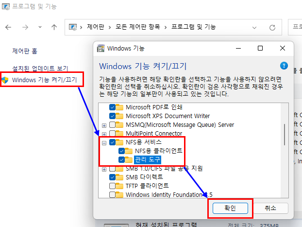 NFS 기능활성화 3.1.5. 기능 설치 완료
