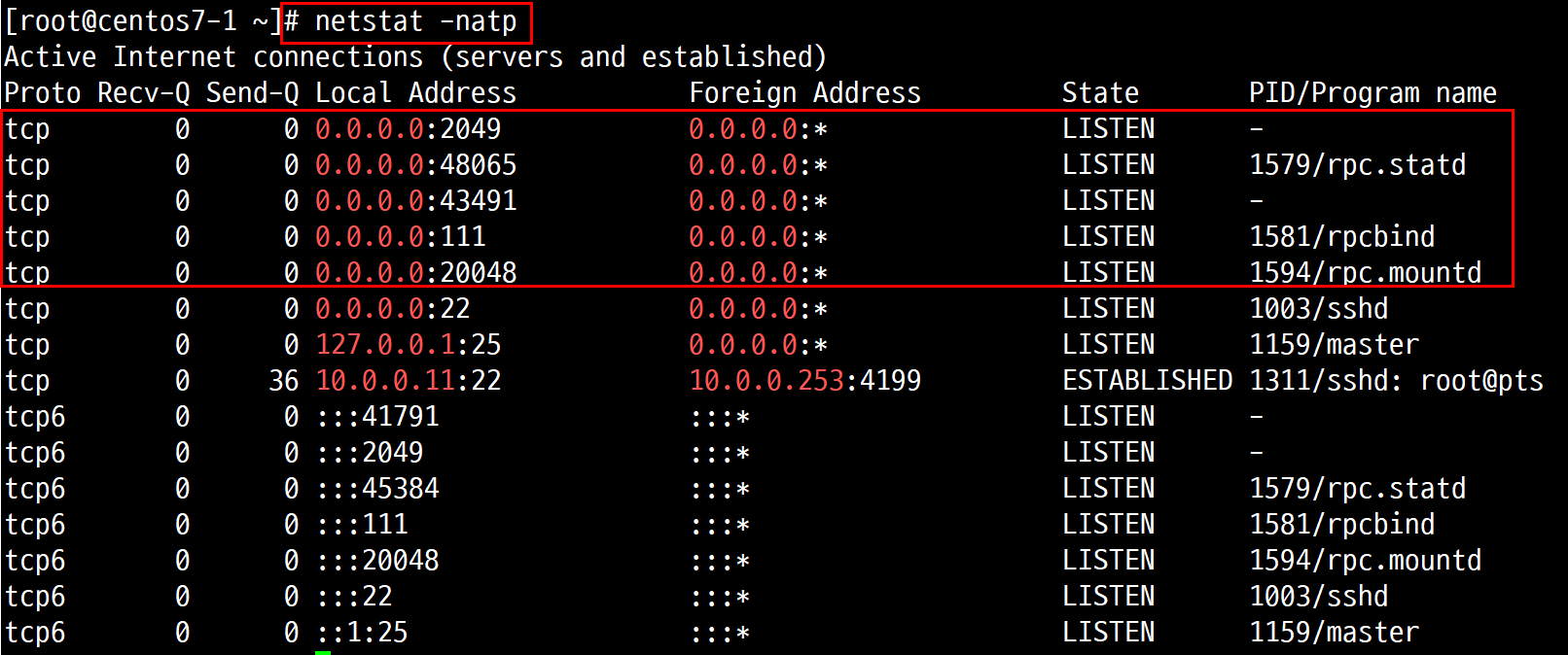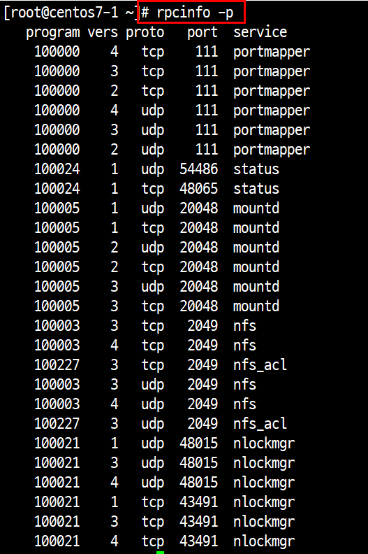 1.6.1. # rpcinfo -p