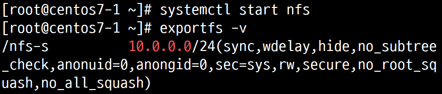 1.3.1.1. /nfs-s 10.0.0.0/24(rw,sync,no_root_squash,anonuid=0,anongid=0)