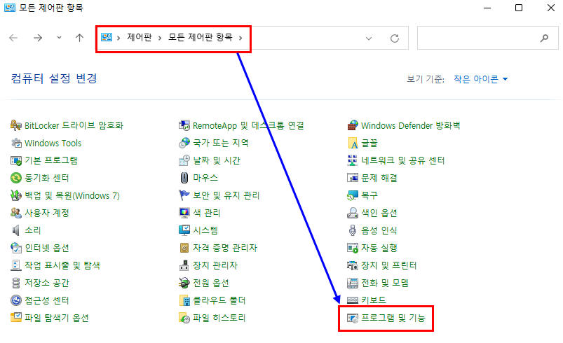 3.1.3.1. 제어판 -> 프로그램 및 기능 클릭