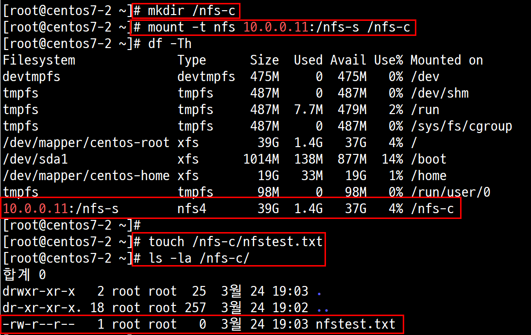 2.2.2.1. # mount -t nfs 10.0.0.11:/nfs-s /nfs-c