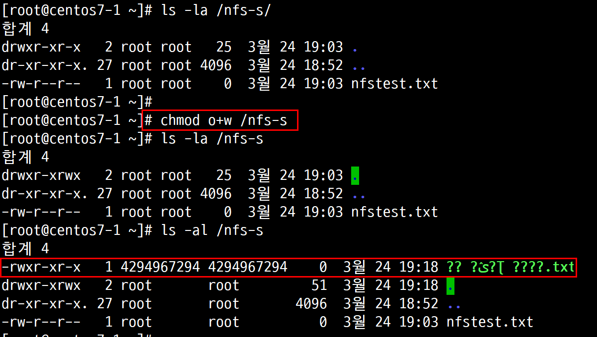 파일 생성 3.3.3. NFS Server측에서 Other에 대한 쓰기권한 부여