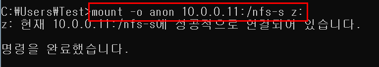 3.2.1.2. 드라이브명 z 로 NFS Server Directory Mount