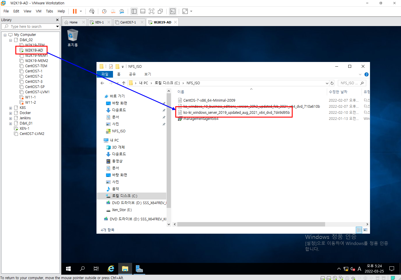 1.1.1. 기 구성한 Windows Server 2019의 NFS_ISO 폴더에 Windows Server 2019 ISO 파일 추가